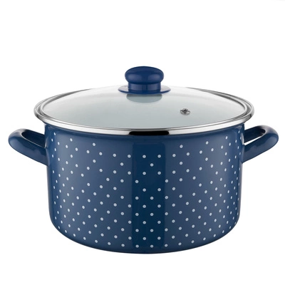 Garnek emaliowany na indukcję Emalia Polska Pleszew Retro 22 cm 5,3 l granatowy
