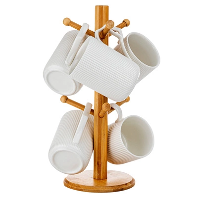 Zestaw 4 kubków porcelanowych 330 ml na stojaku Florina Glamour