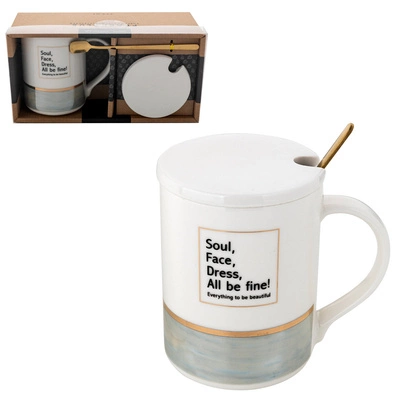 Kubek porcelanowy z pokrywką i łyżeczką Florina Pearl Blue 350 ml