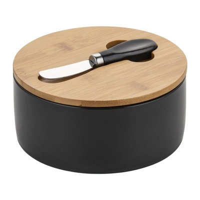 Maselnica z bambusową pokrywką i nożem Florina Adria 16x6 cm czarna