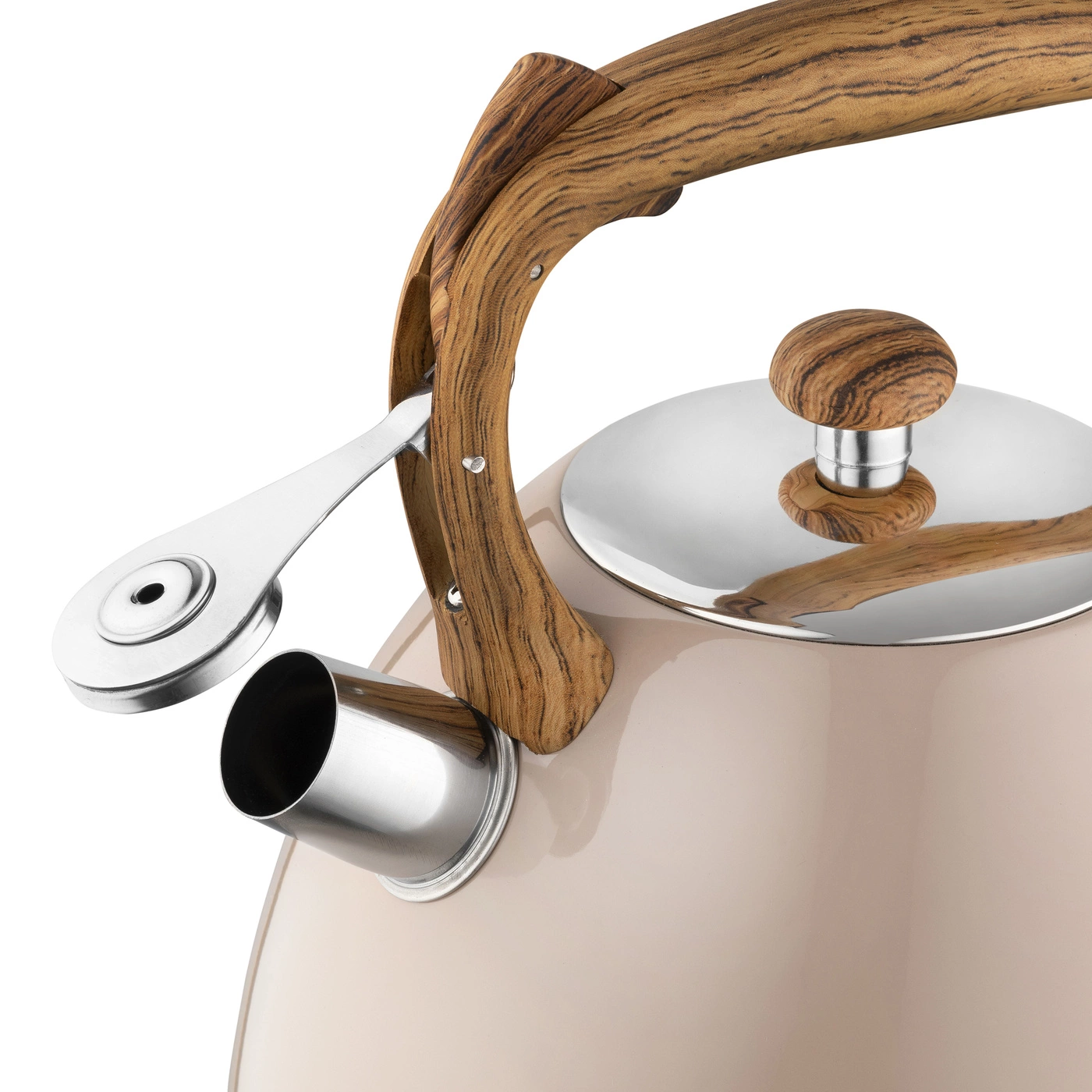 Czajnik przystosowany jest do wszystkich typów kuchenek, nawet do kuchenek indukcyjnych, co czyni z niego uniwersalne rozwiązanie dla domu, bez względu na jego wyposażenie. Zdejmowana pokrywa ułatwia nalewanie wody do czajnika oraz czyszczenie naczynia. Gwizdek automatyczny zwiększa bezpieczeństwo w trakcie użytkowania.