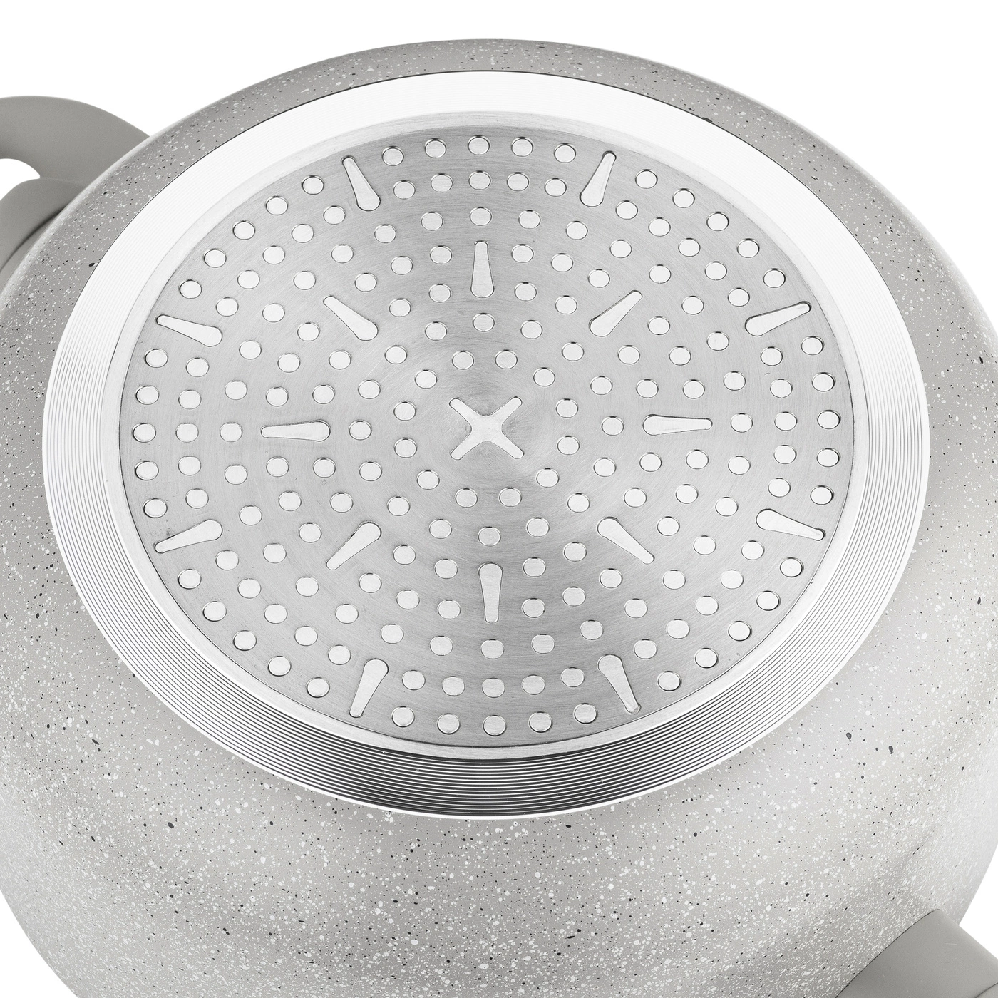 Wykonany z aluminium i pokryty nieprzywierającą powłoką daje możliwość gotowania i podgrzewania ulubionych potraw w minimalnej ilości tłuszczu. Ciesz się zdrowszą kuchnią tworząc niskokaloryczne dania i nie tracąc przy tym na walorach smakowych.
