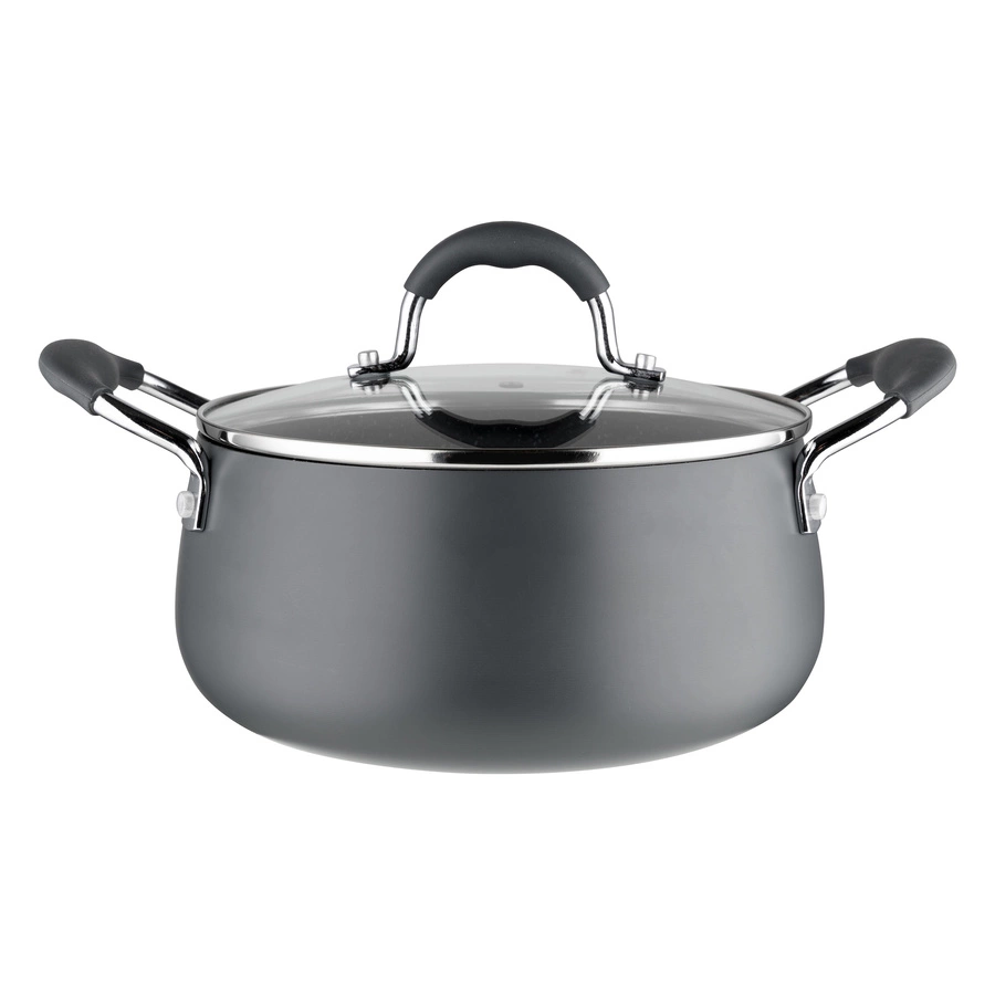 Naczynie posiada nierdzewne uchwyty z silikonem, który sprawia, że użytkowanie naczynia jest komfortowe i bezpieczne. Szklana pokrywka pozwala na bieżąco obserwować proces gotowania, bez konieczności jej podnoszenia.