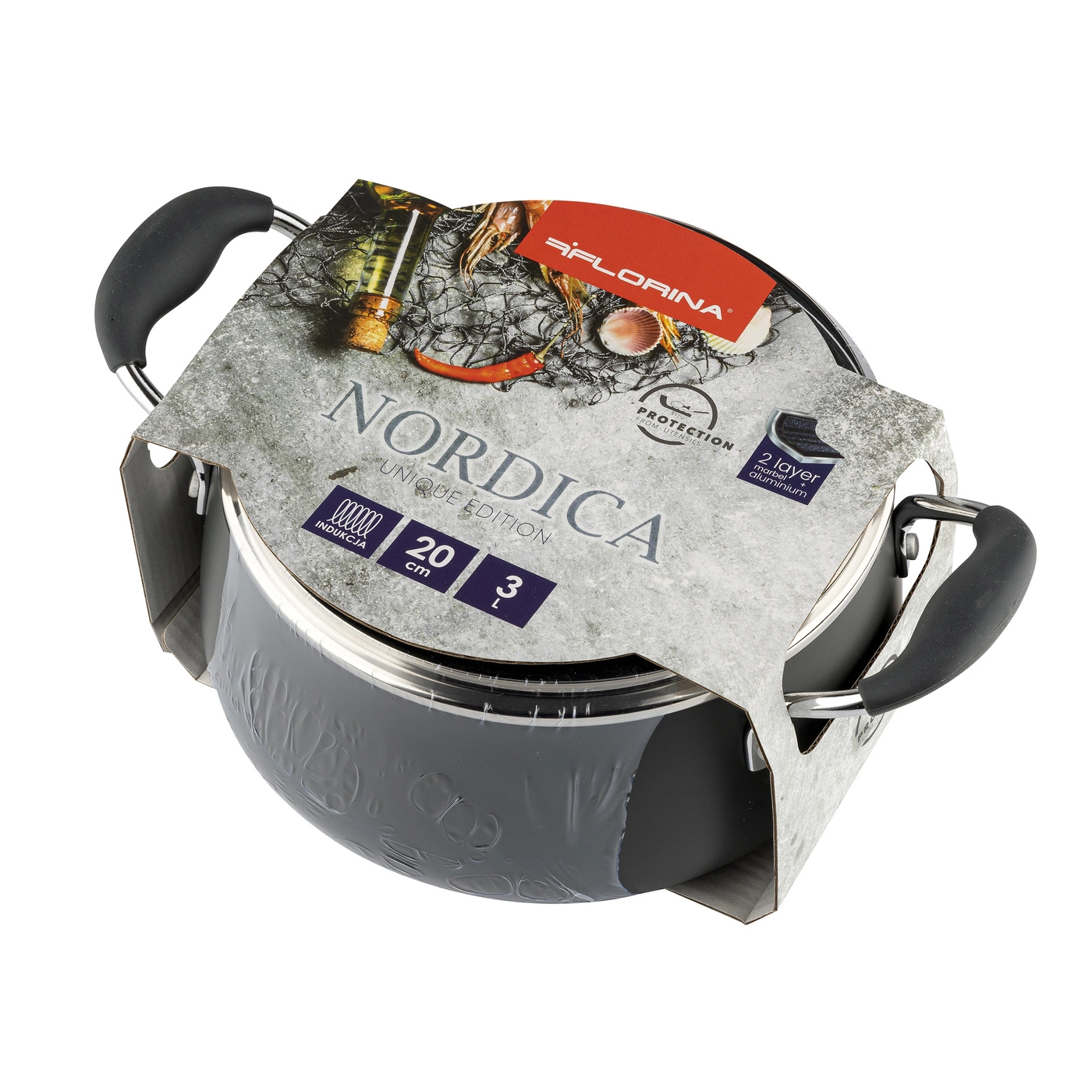 Naczynie Nordica doskonale odnajdzie się w każdej kuchni – szarość korpusu i minimalistyczny design pasuje do każdego wystroju, a funkcjonalne dno pozwala gotować na wszystkich rodzajach kuchenek, w tym indukcji.