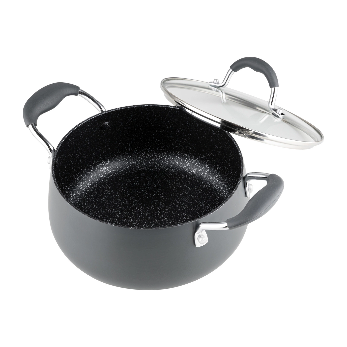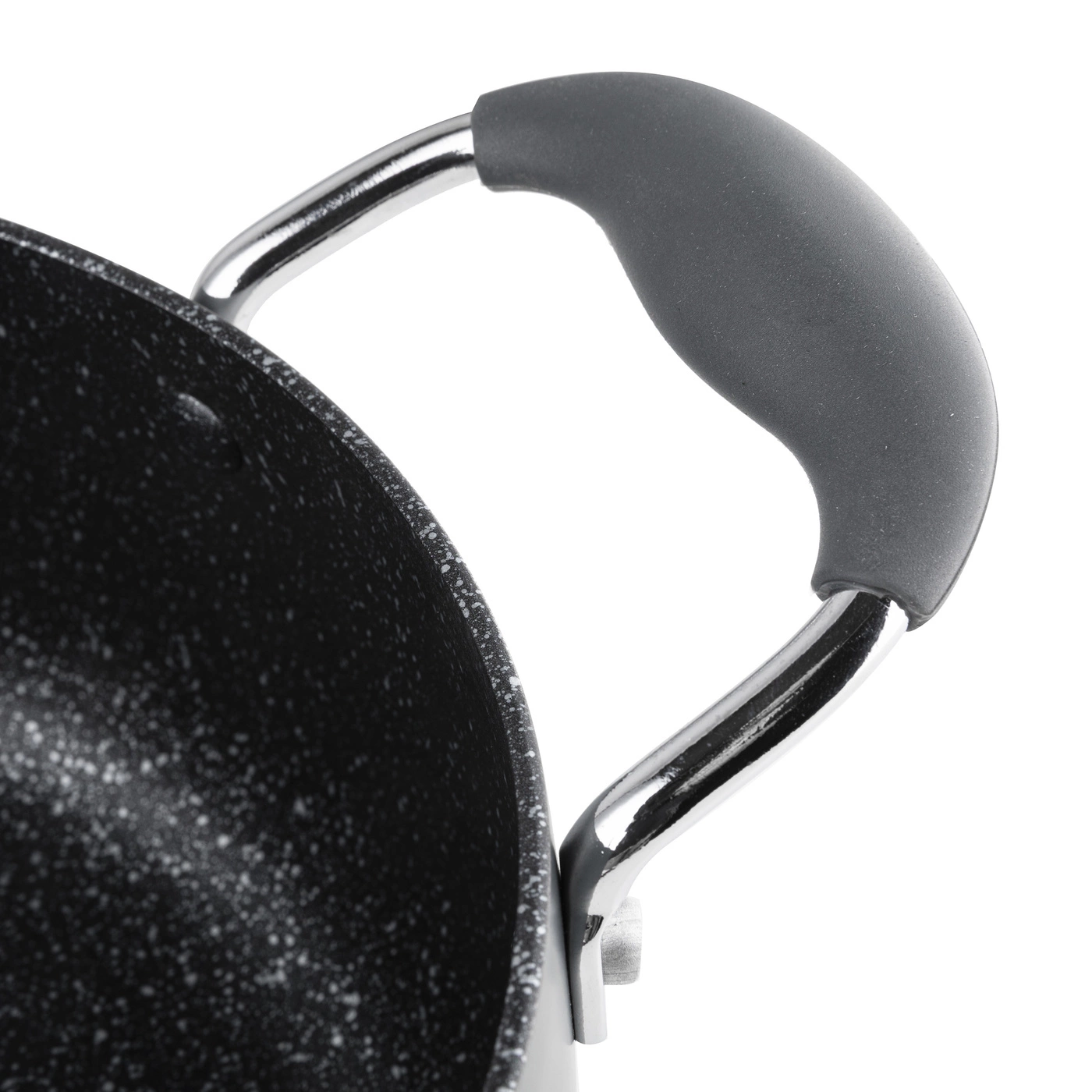 Garnek pokryty jest dwoma warstwami powłoki typu marmur nakrapianej białymi drobinkami. Ten typ powierzchni zapobiega przywieraniu jedzenia do powierzchni naczynia, jednocześnie zapewniając łatwiejsze i szybsze zmywanie.