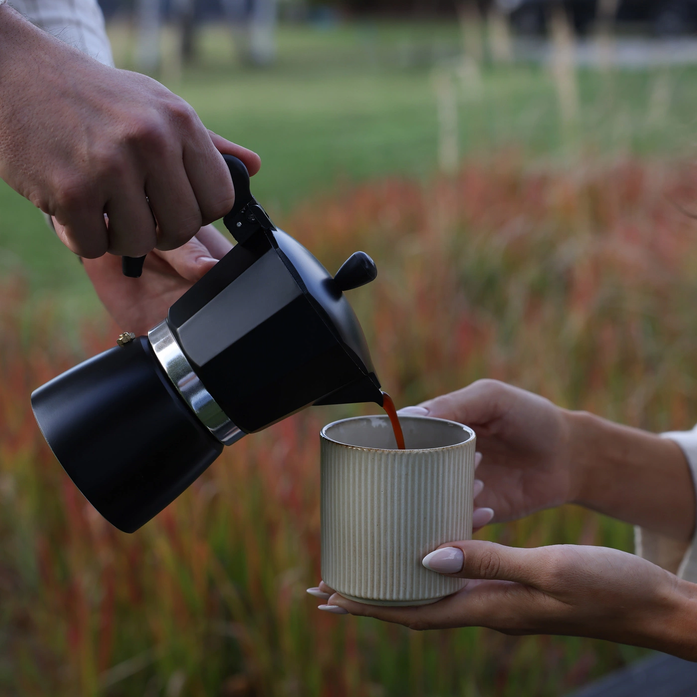 Doskonała „mała czarna” przyrządzana jest w kawiarce metodą ciśnieniową. Wystarczy podstawę urządzenia napełnić wodą, do sitka wsypać odpowiednią ilość świeżo mielonej kawy i zainstalować górną część. Kafetierę ustaw na kuchence gazowej, ceramicznej lub elektrycznej (nie nadaje się na indukcję) a już po kilku minutach delikatne gwizdanie urządzenia powiadomi Cię o gotowym napoju.