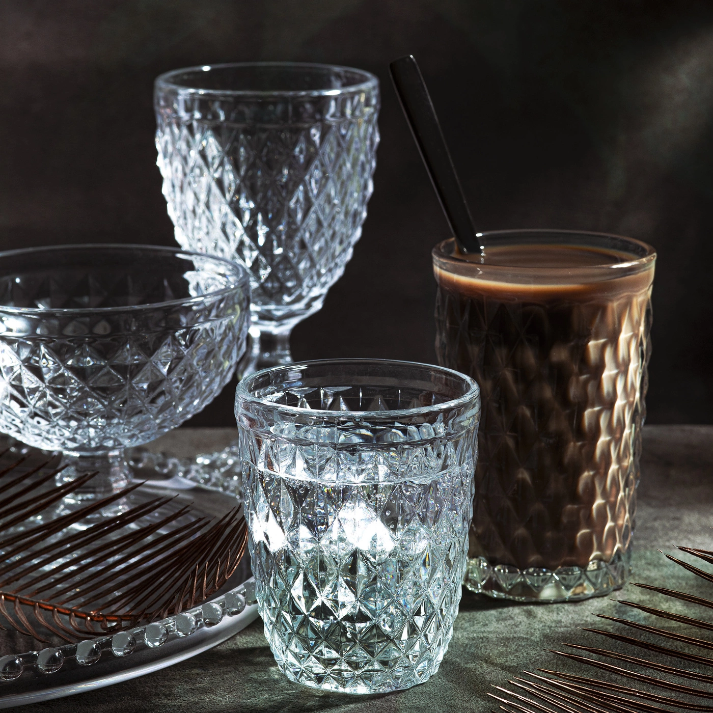 Kielich o strukturze diamentu dodaje niezwykłej elegancji każdej zastawie. To naczynie to najbardziej efektowny sposób ekspozycji serwowanego napoju. Przeźroczystość szkła dodaje kielichowi o pojemności 300 ml subtelności. Nowoczesny design kielicha przypominający kryształ sprawdzi się zarówno na przyjęciach, jak i na co dzień.