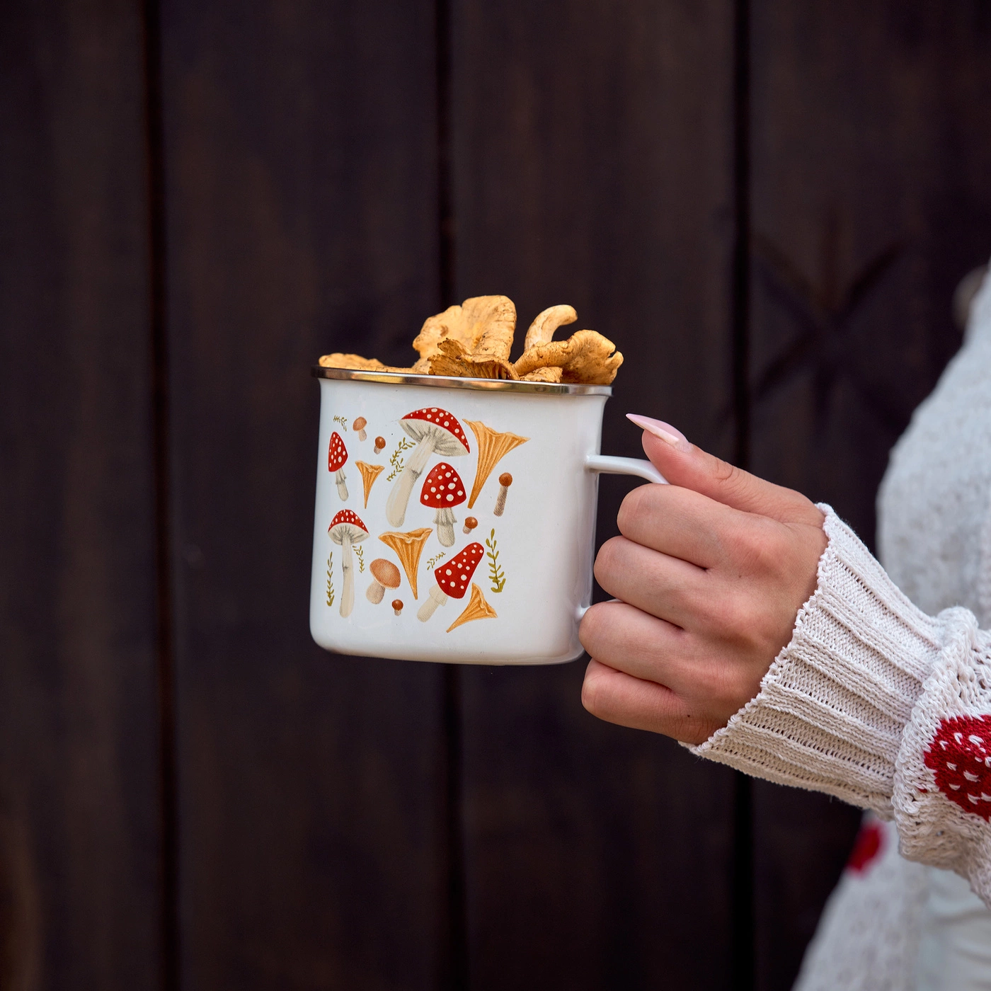 - Kubek emaliowany Grzybki ma pojemność 1,25 l. Wykonany ze stali węglowej i pokryty powłoką emaliowaną. Nie reaguje z żywnością i nie wpływa na jej smak. Kubek można używać na dowolnej kuchence, także indukcji. Naczynie nadaje się do mycia w zmywarce.