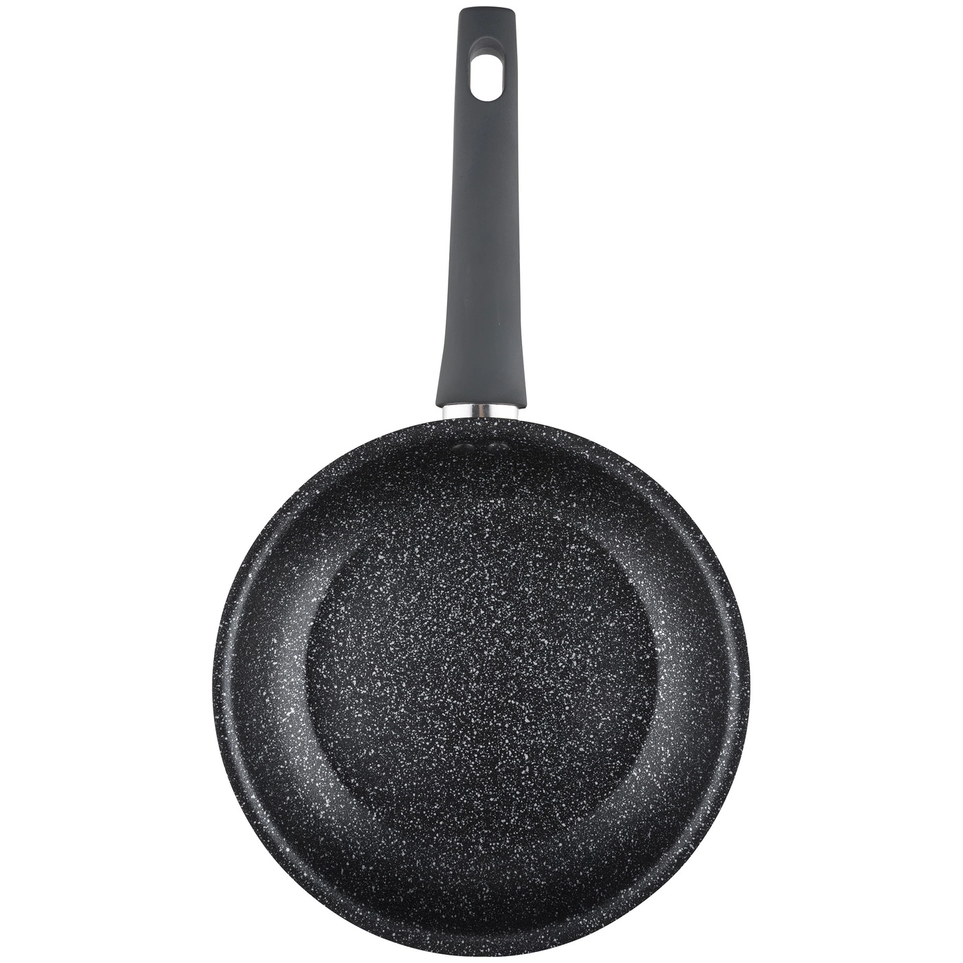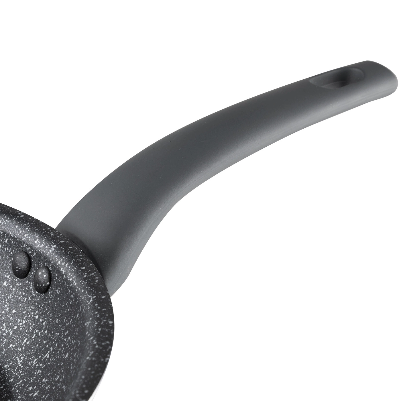 Patelnia pokryta jest dwoma warstwami powłoki typu marmur nakrapianej białymi drobinkami. Ten typ powierzchni zapobiega przywieraniu jedzenia do powierzchni naczynia, jednocześnie zapewniając łatwiejsze i szybsze zmywanie. Naczynie posiada rączkę z bakelitu, dzięki czemu użytkowanie naczynia jest komfortowe i bezpieczne.