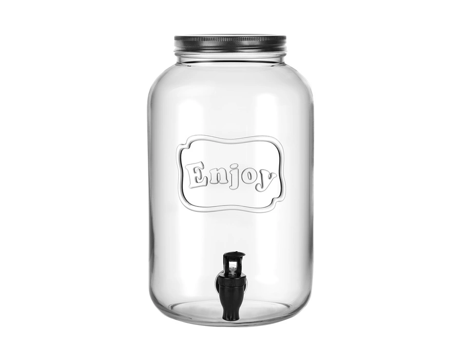 Słój z kranem Enjoy to doskonałe rozwiązanie na gorące dni. Przeznaczony do zimnych napojów słój wyposażony jest w kranik ze specjalnym zabezpieczeniem, zapewniającym wygodne i łatwe nalewanie. Pojemność 3,8 l doskonale sprawdzi się na co dzień w domu, jak i podczas przyjęć, wspólnego grillowania, czy spotkań na tarasie.