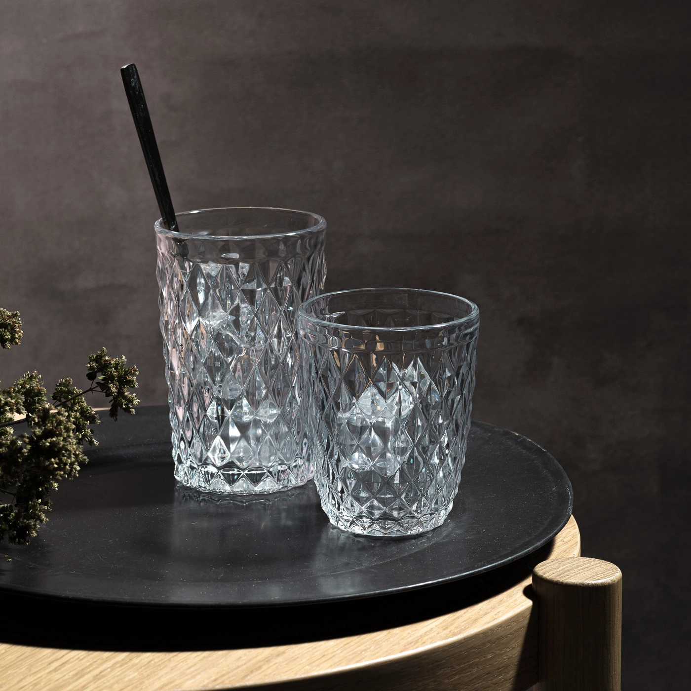 Szklanka o strukturze diamentu dodaje niezwykłej elegancji każdej zastawie. To naczynie to najbardziej efektowny sposób ekspozycji serwowanego napoju. Przeźroczystość szkła dodaje szklance o pojemności 260 ml subtelności. Nowoczesny design kielicha przypominający kryształ sprawdzi się zarówno na przyjęciach, jak i na co dzień.
