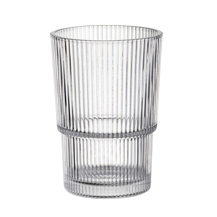 Szklanka Baltico o pojemności 420 ml wyróżnia się ryflowaną strukturą i ciekawym kształtem, które nadają naczyniu elegancji i unikalnego wyglądu. Naczynie jest minimalistyczne, a przy tym niezwykle estetyczne. Będzie idealnym uzupełnieniem nakrycia stołu bez względu na okazję.