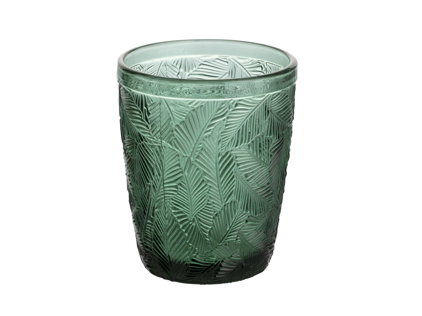 Szklanka jest wykonana ze szkła sodowego, dzięki czemu jest nie tylko estetyczna, ale też trwała. Wyjątkowa tekstura tropikalnych liści sprawia, że naczynia z linii Tropic wyróżniają się wśród zastawy stołowej. Zielony kolor szkła doskonale podkreśla inspirowany naturą wzór naczynia.