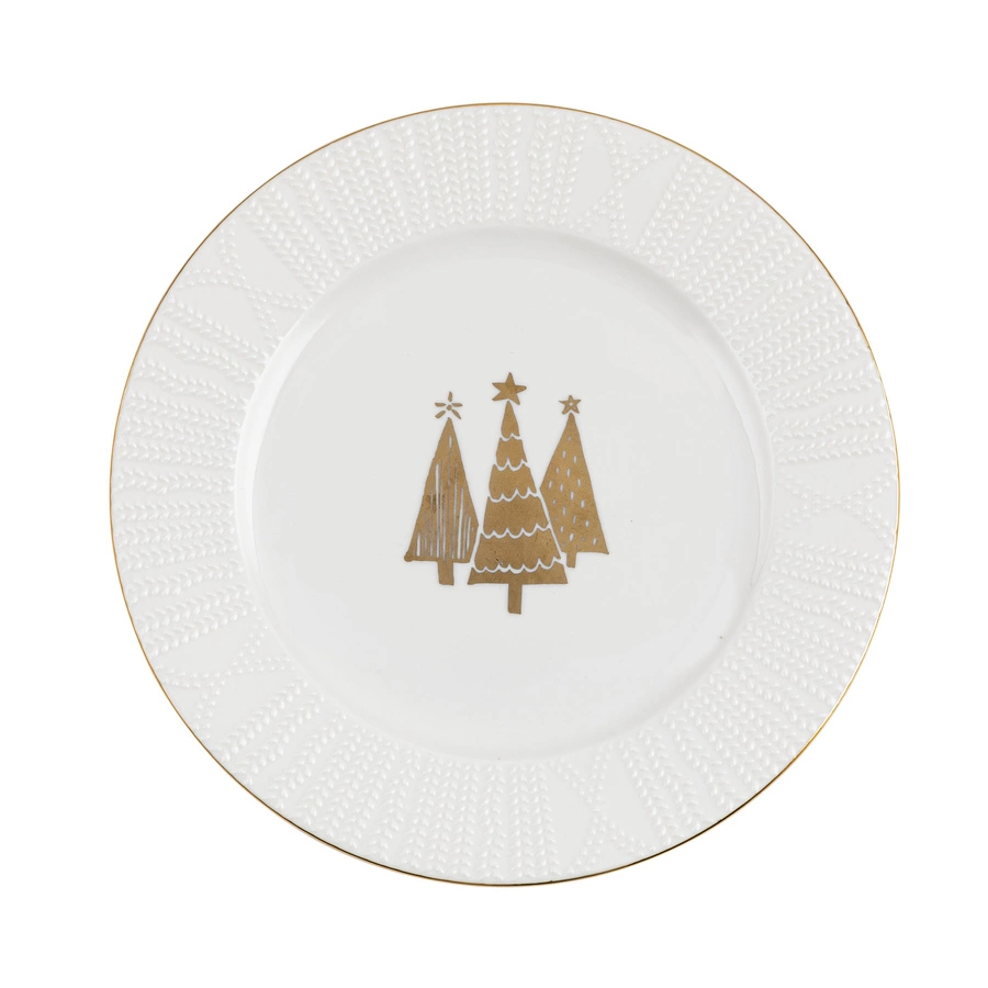 Stwórz prawdziwą magię świąt ze świątecznym talerzem deserowym Florina Golden Christmas Tree. Naczynie wyróżnia się grafiką urokliwej zimowej scenerii z choinkami oraz krawędziami o teksturze wełnianego swetra. Osłódź zimowe wieczory deserami serwowanymi na talerzach deserowych Golden Christmas Tree.