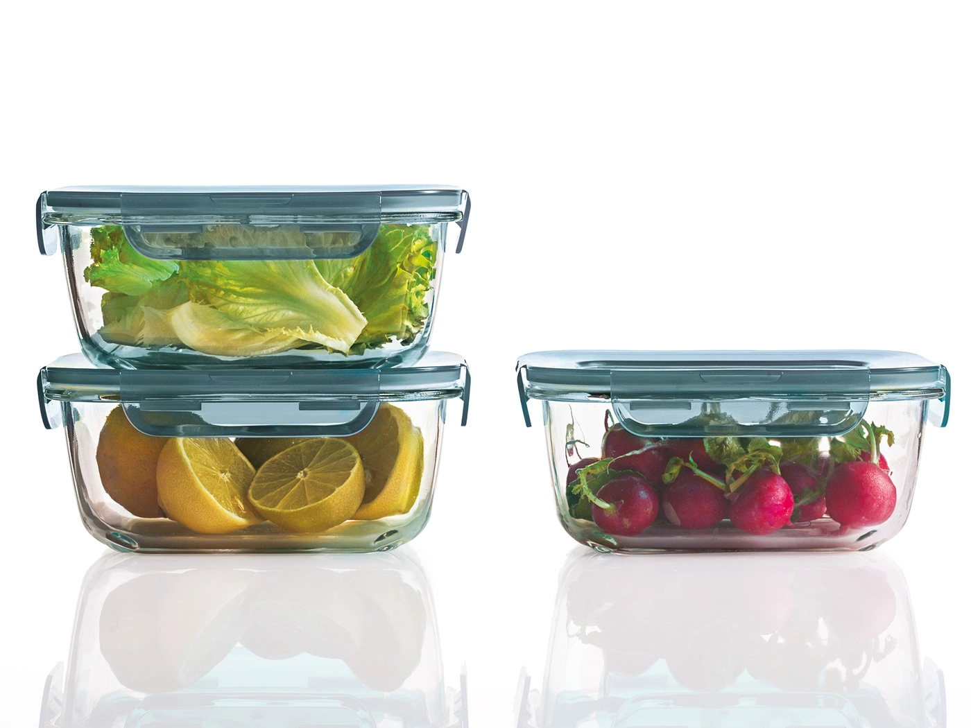 Pojemniki do żywności Frigoverre Evolution Bormioli 12 x 12 cm; 14 cm i 18 x 14 cm - szkło w służbie świeżości