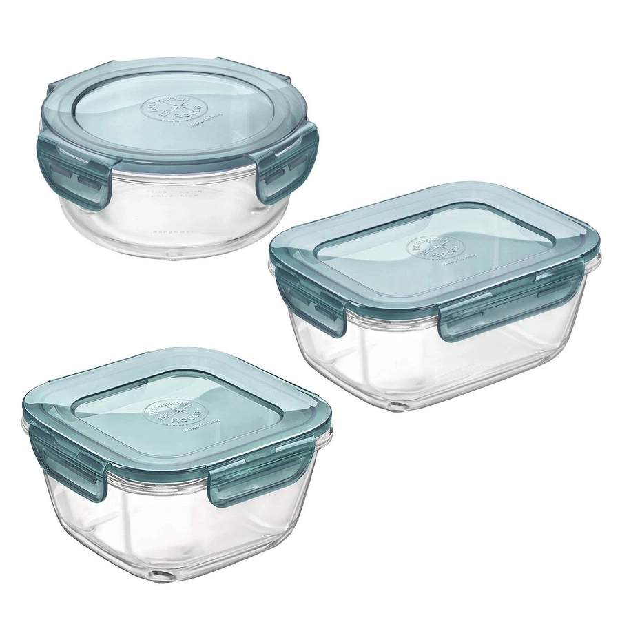 Zestaw pojemników do żywności Bormioli Rocco Frigoverre Evolution 12x12 cm; 18x14 cm; 18x18 cm; 14 cm